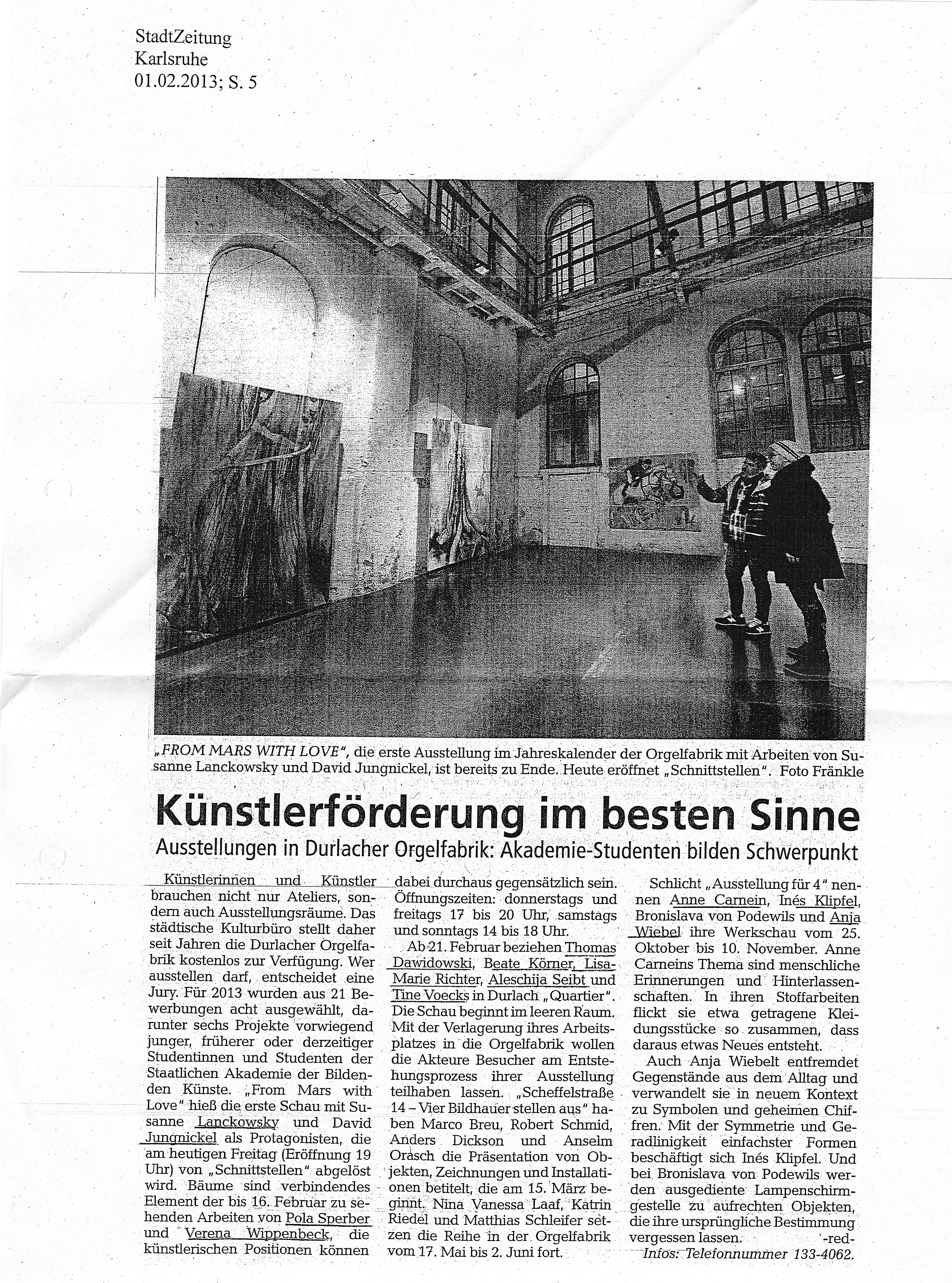 in: StadtZeitung Karlsruhe, 01.02.2013, 5