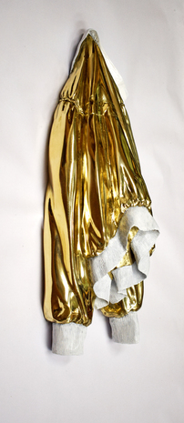 Saturday Night, 2025, polierte Tombak Bronze, weißer Lack, 87 × 29 × 19 cm