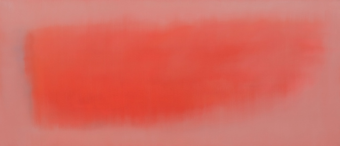 One Red, 2024, Tempera auf Leinwand, 95 × 220 cm