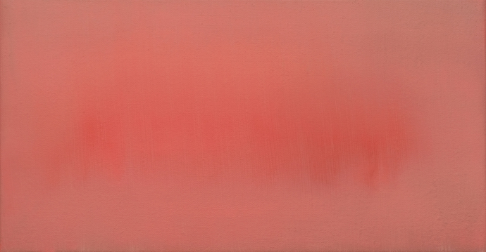 Pink Closes Red, 2023, Tempera auf Leinwand, 32 × 60 cm