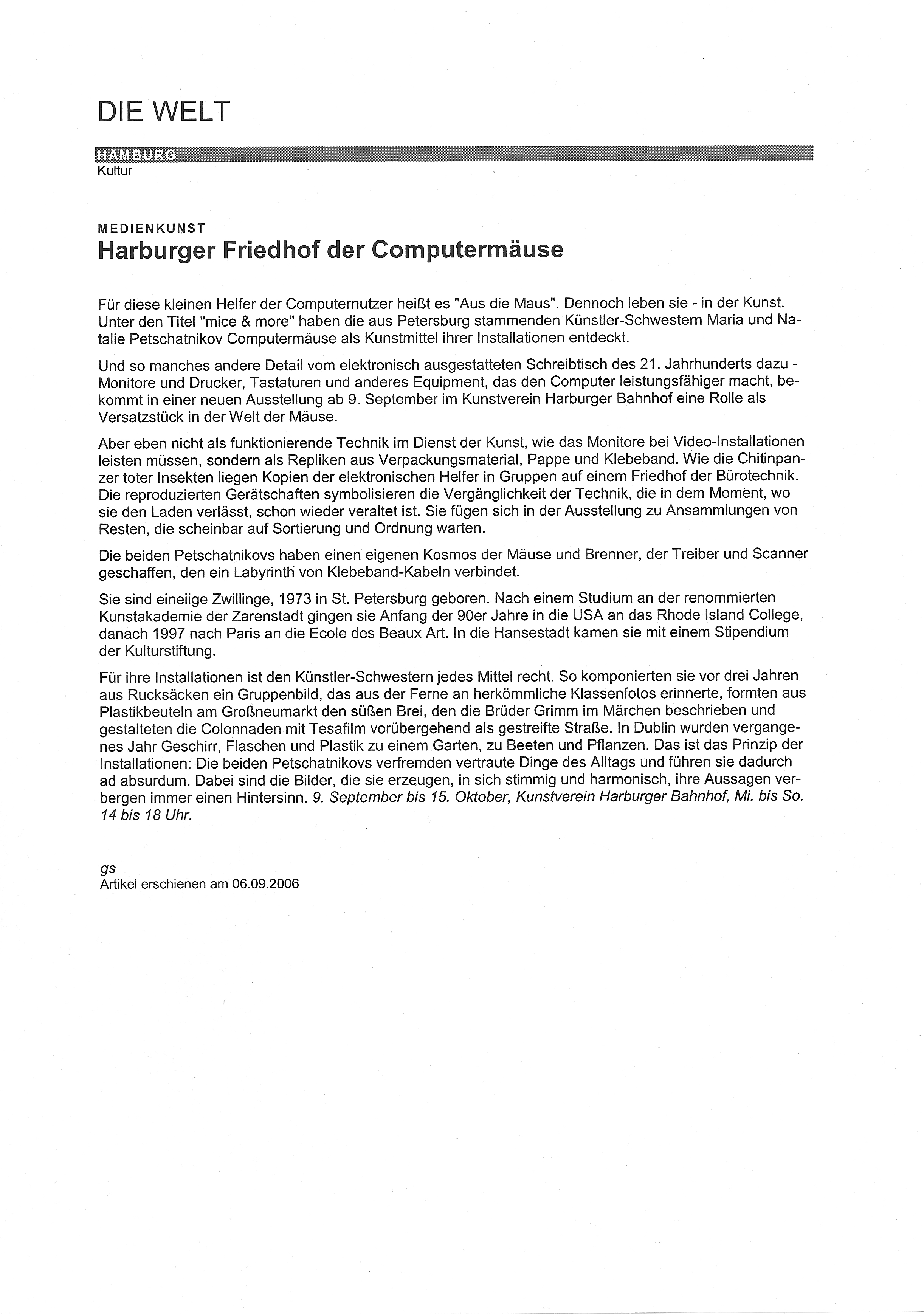 in: die Welt, 06.09.2006