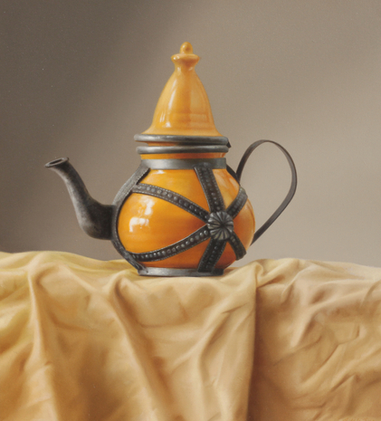 Marokkanische Teekanne, 2025, Öl auf Malplatte, gerahmt, 30 × 33 cm