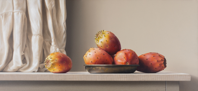 Kaktusfeigen, 2020, Öl auf Malplatte, gerahmt (Holz), 27,5 × 61 cm