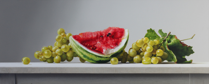 Melone und Trauben, 2021, Öl auf Malplatte, 30,2 × 75,2 cm