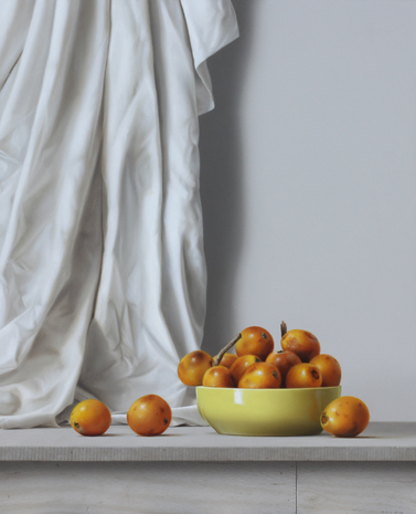 Mispeln, 2022, Öl auf Malplatte, 62 × 50,5 cm