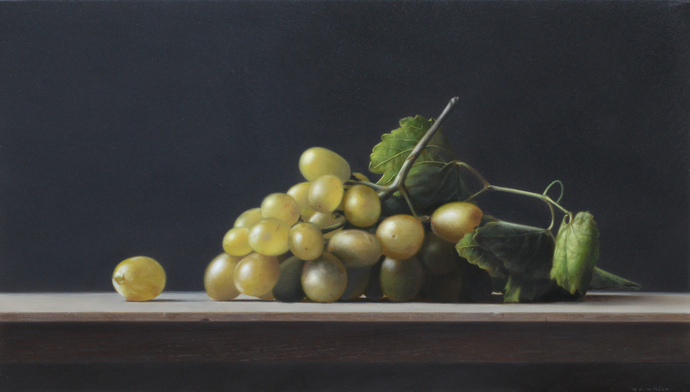 Trauben, 2022, Öl auf Malplatte, 19,8 × 35 cm