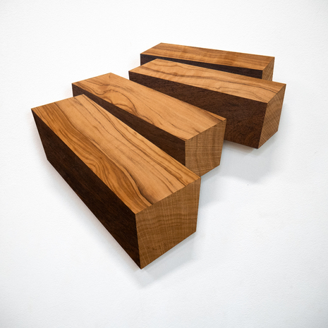 Four Beams, 2021, Olive, Furnier auf Sperrholz, 44 × 49 × 2 cm