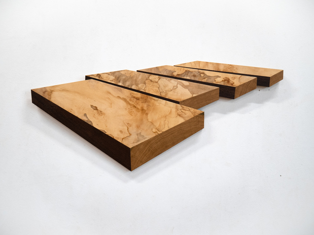 Four Panels, 2021, Eiche und Ahornfunrier auf Sperrholz, 40 × 96 × 2 cm