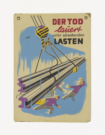 Arbeitsschutz (Der Tod lauert unter schwebenden Lasten), 2025, Öl/Acryl auf Leinwand, auf Malpappe kaschiert, 60 × 42 cm