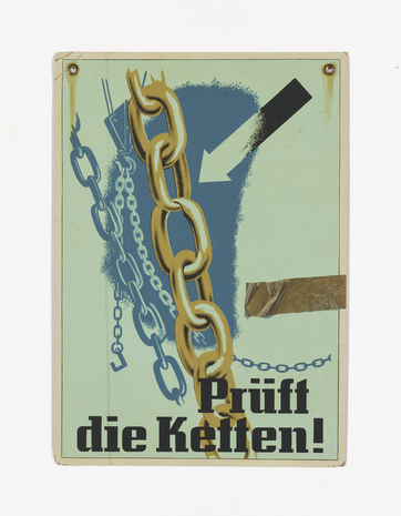 Arbeitsschutz (Prüft die Ketten!), 2025, Öl/Acryl auf Leinwand, auf Malpappe kaschiert, 60 × 42 cm