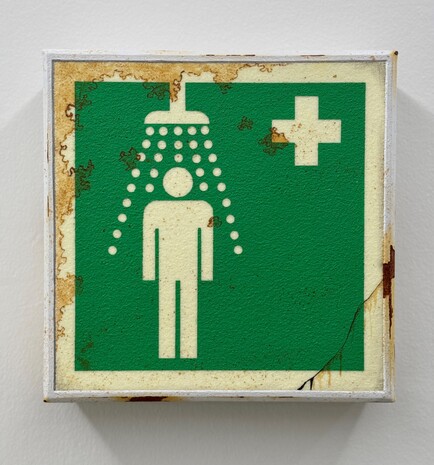 DUSCHE, 2024, Öl/Acryl auf Leinwand, fluoreszierend, 25 × 25 × 6 cm