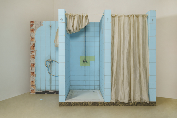 Duschkabinen, 2023, Öl, Acryl auf Leinwand, 330 × 90 × 220 cm