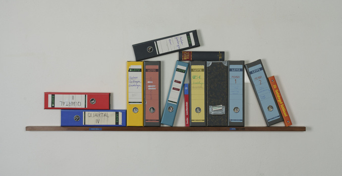 Leitzkultur 14, 2024, Öl/Acryl auf Holz und Leinwand, 50 × 135 × 4 cm