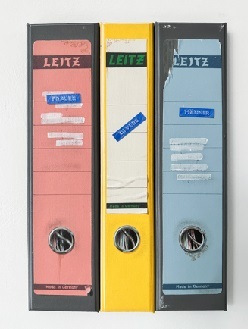 Leitzkultur (Gender), 2024, Öl/Acryl auf Leinwand, 3-tlg., 31, 5 x 22 x 2 cm, weitere einzelne Ordner je 680,- Euro