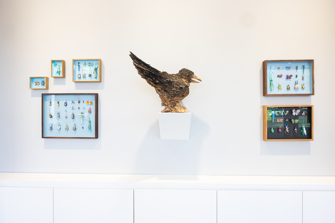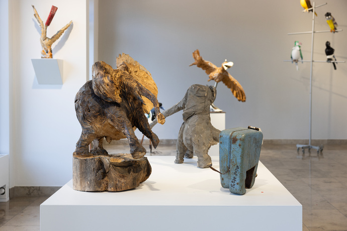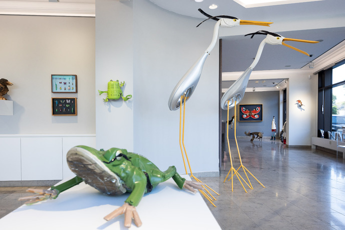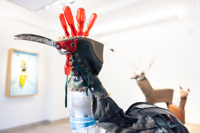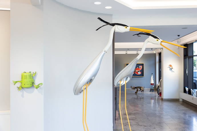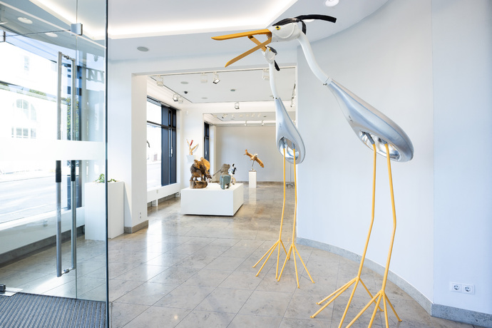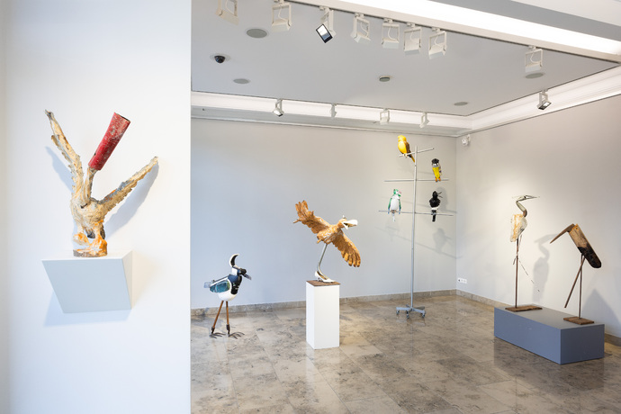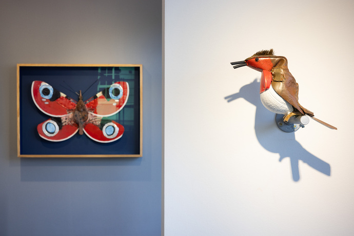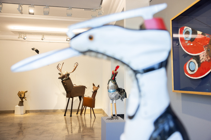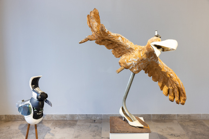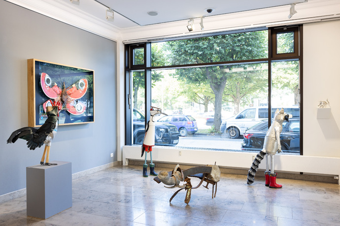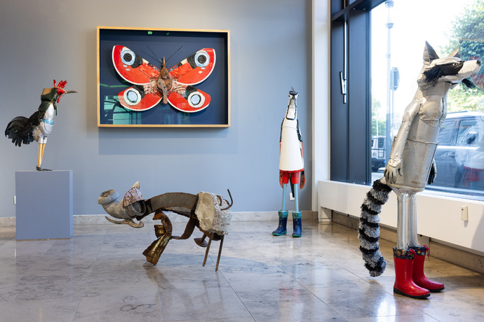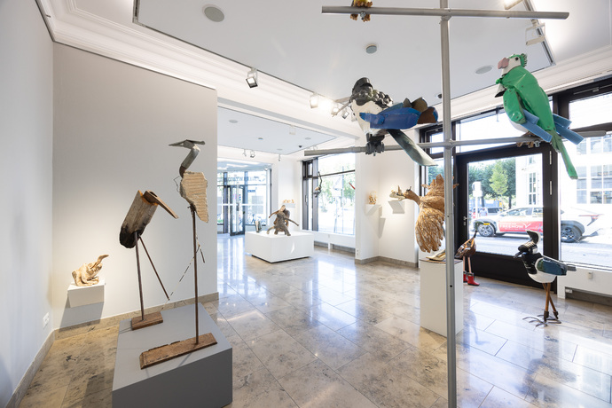 Lost and Found ist der englische Begriff für Fundbüro und genau dort scheinen Matthias Garff und Thomas Putze herumgestöbert zu haben. Aus Verlorengegangenem oder achtlos Weggeworfenem machen die beiden Junk Art Künstler Kunst. Beide betreiben vorbildliches Recycling, ja sogar Upcycling – heraus gekommen ist eine wilde Schar von Tieren: Vögel, Insekten, Amphibien und Säugetiere bevölkern die Galerie – obgleich beide Künstler einen ähnlichen Ansatz verfolgen, fallen ihre Werke sehr unterschiedlich aus.