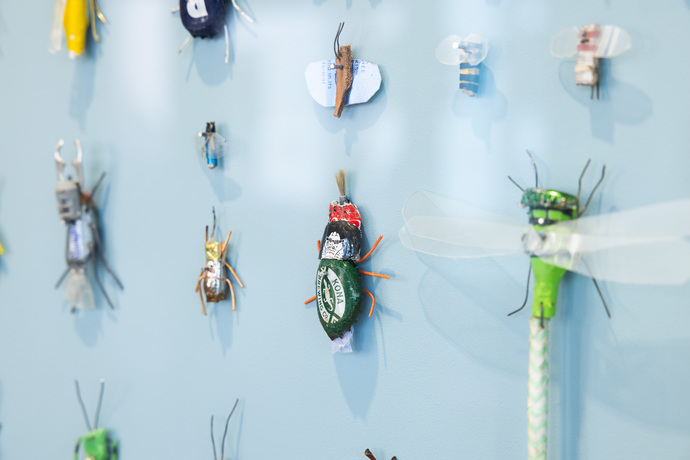In großformatigen Sammlungskästen präsentiert Matthias Garff Insektenarten, die nicht etwa im Anthropozän untergegangen sind. Nein! Seine Käfer, Motten, Falter und Libellen haben sich perfekt angepasst.
