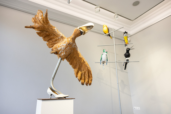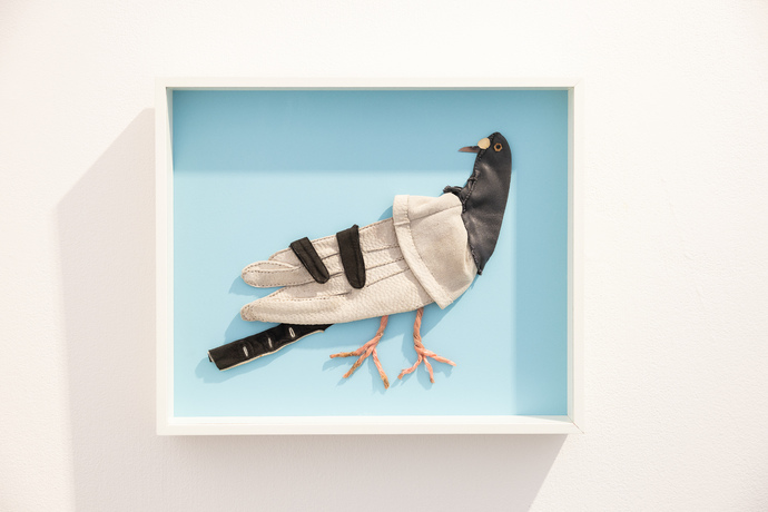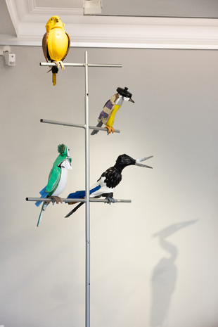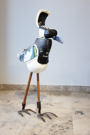 Matthias Garff, geb. 1986, sieht die Welt mit einem ganz besonderen Blick. Seine ornithologisch stets genau bestimmbaren Skulpturen-Vögel scheinen sich die Welt des Menschen angeeignet zu haben. Nicht sie werden vom Menschen aus ihren Lebensräumen gedrängt. Nein, sie haben die Menschenwelt übernommen und bestehen ganz aus Fundstücken der Industriegesellschaft.