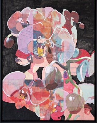 Orchideen, Pigment auf Holz, 80 × 60 × 4 cm