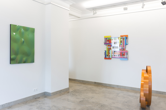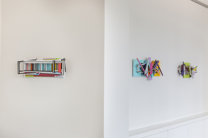 Die drei Künstler Dieter Balzer, Jürgen Paas und Willi Siber haben vieles gemeinsam. Sie arbeiten abstrakt. Sie verwenden industriell gefertigte Materialien wie PVC-Bänder, MDF-Platten und Stahlformen, Spezial-Folien und Pulverlacke, die sie zweckentfremdet und in handwerklicher Perfektion einsetzen. Sie experimentieren abseits der Funktionalität mit den spezifischen Eigenschaften der Materialien und stellen die ästhetische Komponente in den Vordergrund. In diesem Aufwertungsprozess agieren alle drei Künstler verschwenderisch mit dem Einsatz von Farbe.