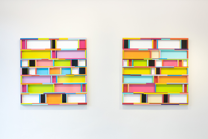 Die Reliefs, Objekte und Skulpturen sind genauestens konstruierte und perfekt aufgeführte Mini-Architekturen. Klar aufgebaut nach den Prinzipien von Symmetrie, Spiegelung, Reihung und Drehung, entziehen sie sich doch der rationalen Beschreibung. Denn immer wieder wird das zugrundeliegende Ordnungsprinzip unterbrochen, gibt es Verschiebungen und Brechungen. Einzelne Ebenen überlagern sich, wachsen in den Raum und vermischen sich miteinander, Schatten und Perspektiven entstehen.