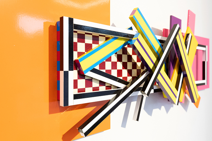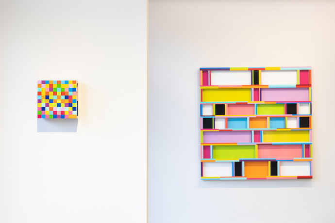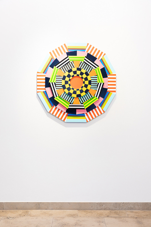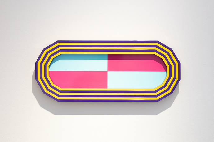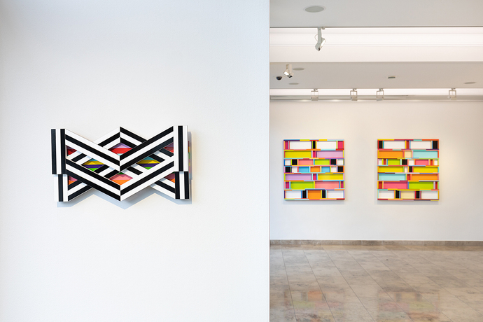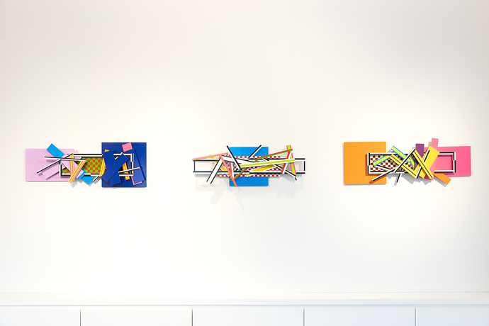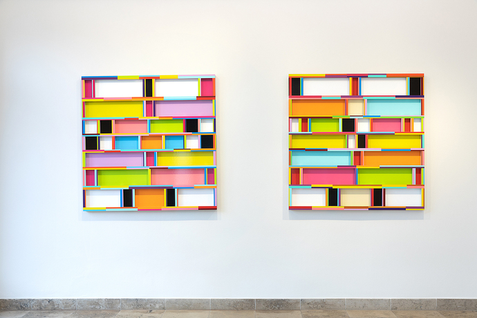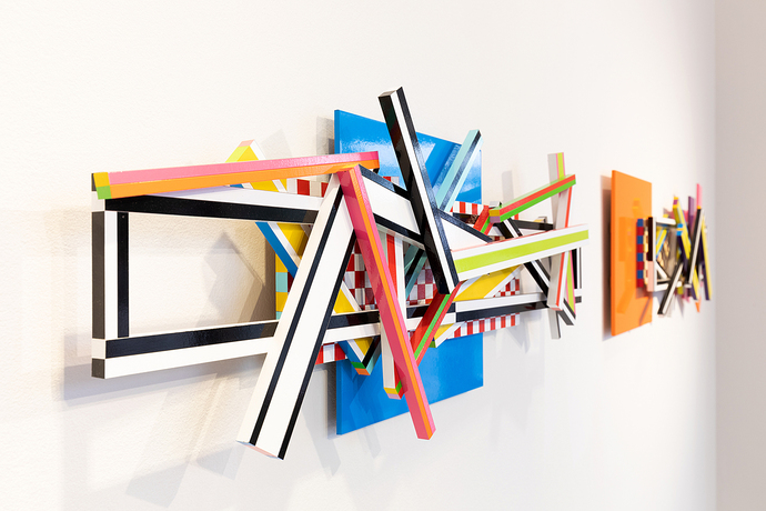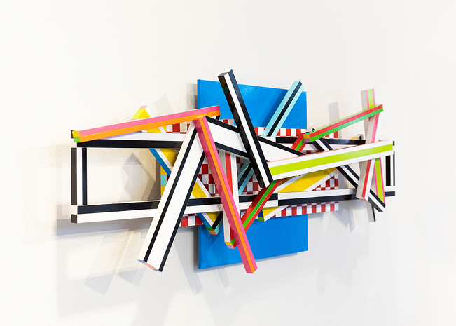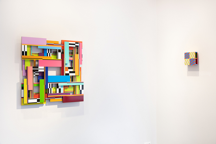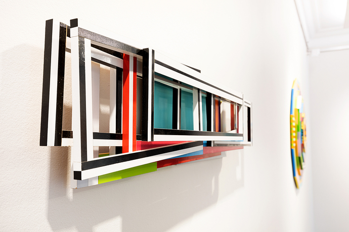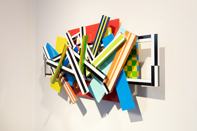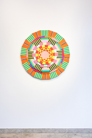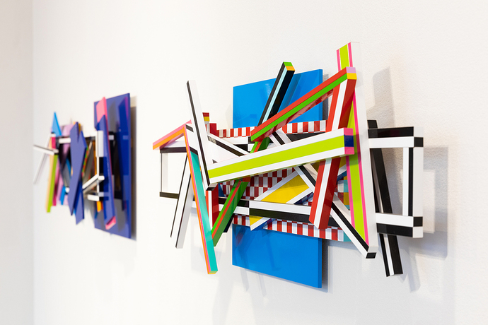Die Einzelausstellung POLYCHROME in der Stern-Wywiol Galerie zeigt Exponate verschiedener Werkgruppen, die sich zu einer Gesamtinstallation verbinden und mit der Architektur des Raums in Beziehung treten.