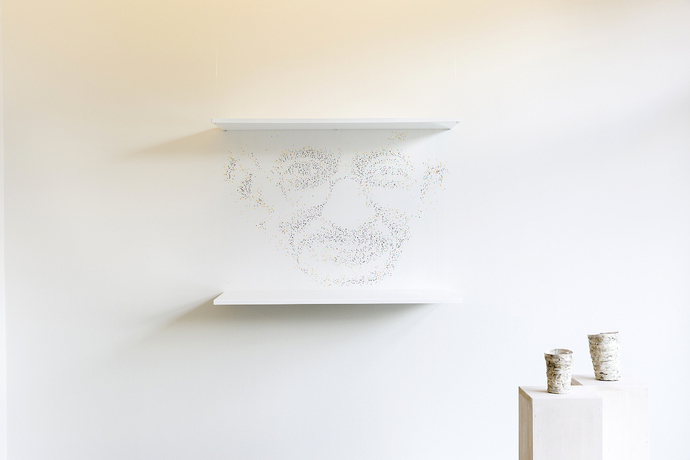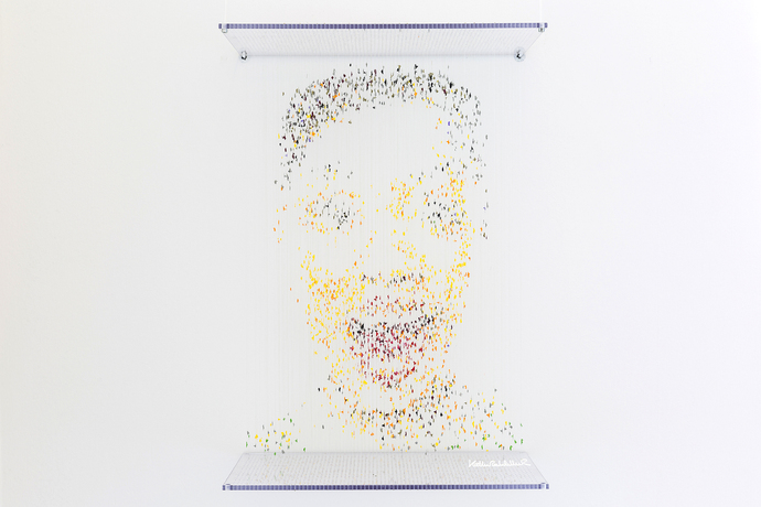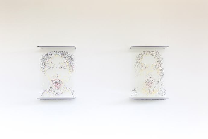 Kathinka Willinek geht vom klassischen Menschenbild aus. Per Computer lässt sie das Bild vom dreidimensionalen Menschen erst als flächiges Pixelbild berechnen und dann wieder in die dritte Dimension übersetzen. Diesen computergenerierten Körper bildet sie in Handarbeit nach, indem sie Batzen von Acrylfarbe an Nylonfäden fixiert. Das menschliche Bild wird so in die digitale Abstraktion überführt und gleichzeitig um eine neue, plastische Wirklichkeit bereichert.