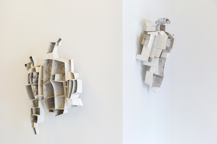 Anja Wiebelt stellt neue Arbeiten nach Abschluss der Meisterklasse Stephan Balkenhol vor. Sie geht von der inneren Erfahrungswelt aus, für die sie konkrete Bilder und Metaphern sucht. In ihren Arbeiten spürt sie der Flüchtigkeit unseres Gedächtnisses nach, indem sie Fragmente erinnerter Realitäten zu abstrakten Objekten zusammenfügt und damit neue Realitäten schafft.