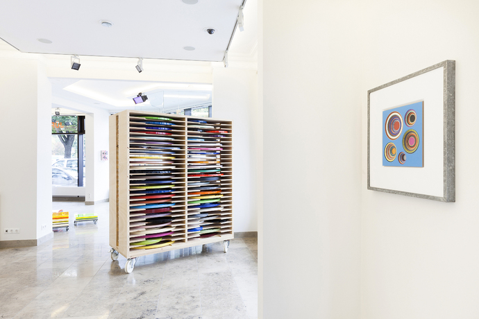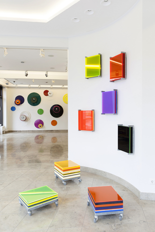 The exhibition HULAHOOP is presented by the Stern-Wywiol Gallery and shows the work of the Essen-based artist Jürgen Paas in an extensive, retrospective exhibition. From the beginning, the artist has worked in a dual role as a painter and sculptor. He lines up painted surfaces in block-like, storehouse constructions one in front of the other, thus turning them into rhythmically structured objects in space. In his latest, highly colorful and seemingly decompressed works, Jürgen Paas adds a highly subjective and even ecstatic element to his characteristically minimalist objects, giving his work a new twist in this way.