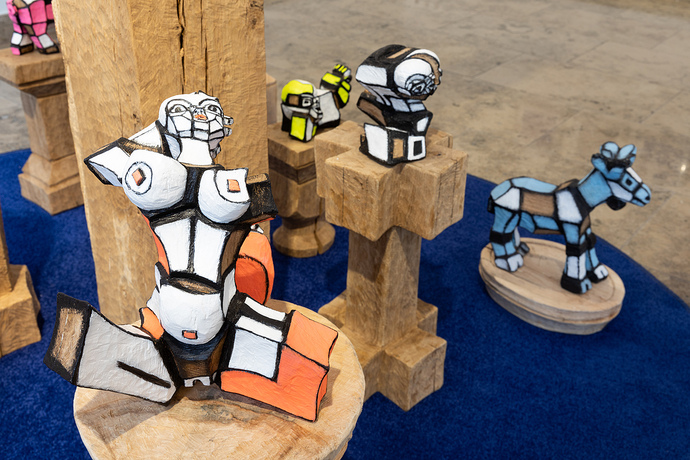 Thomas Putze - ein wichtiger Vertreter der aktuellen Junk-Art. Er sammelt die Dinge, die wir als unbrauchbar aussortieren und verarbeitet sie zu Skulpturen, oft in Verbindung mit holzbildhauerischen Werken. Was auf den ersten Blick burlesk erscheint, ist auf den zweiten Blick auf eine ebenso intelligente wie humorvolle Gesellschaftsanalyse. JUNK