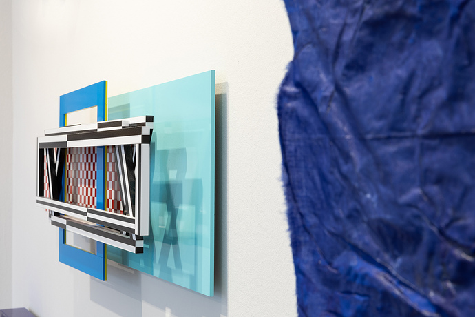 Dieter Balzer - steht in der Tradition der konkreten Kunst. Er zerschneidet MDF-Platten und konstruiert daraus streng geometrische, architektonisch anmutende Objekte für Wand und Raum. Diese beklebt Dieter Balzer mit Farbfolien, die in ihrer Passgenauigkeit die Verstrebungen der MDF-Konstruktionen zwar nachbilden, diese in ihrer Farbigkeit aber konterkarieren. Das Eigenleben der Farbe hebt so die Materialität des Objekts auf und überführt den Gegenstand ins Geistige, Konkrete. KONKRET