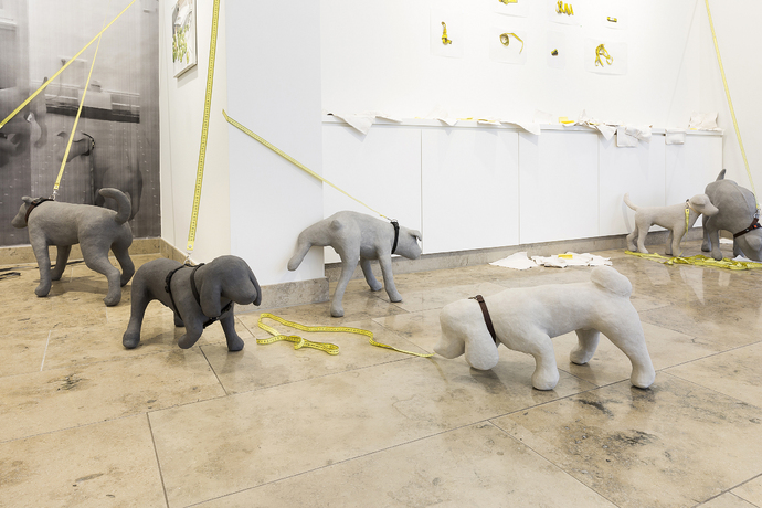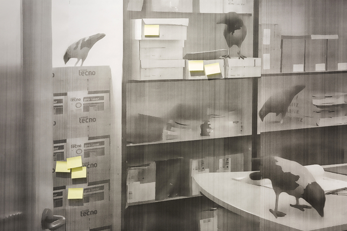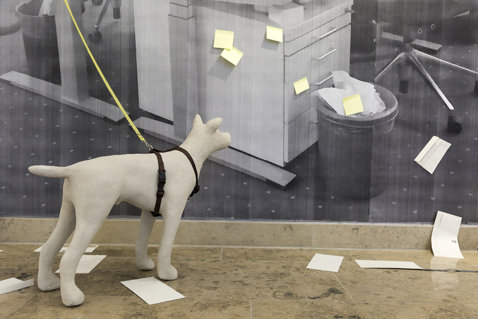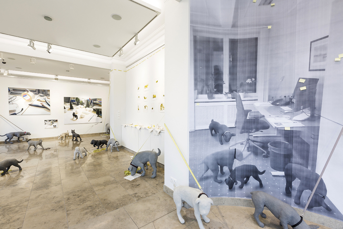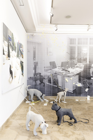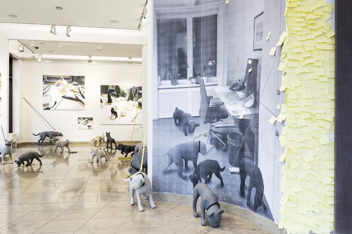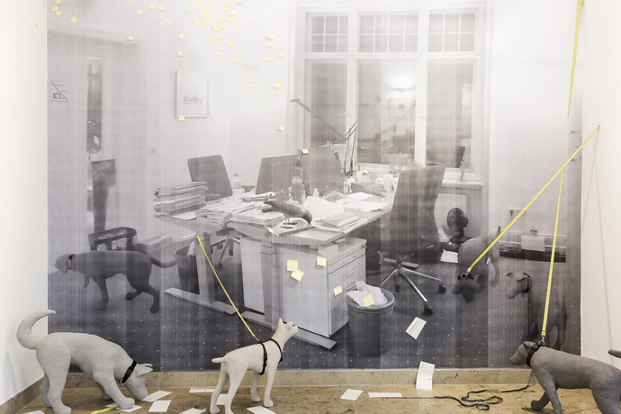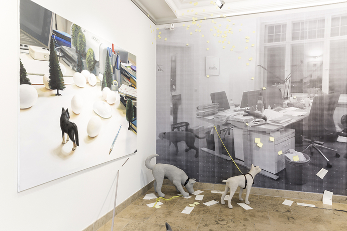 For the Stern-Wywiol Galerie, the two artists have developed an exhibition concept that takes up the gallery’s surroundings within a business district. The twin sisters will generate a kind of morph between the world of art and the world of the office in the gallery’s rooms and create a surreal office space. Ordinary office motifs form a place that is not ordinary and inspires extraordinary associations among viewers. At the same time, their site-specific intervention draws on the Dadaistic tradition of Marcel Duchamp and also elaborates upon the discourse regarding the White Cube in a unique way.