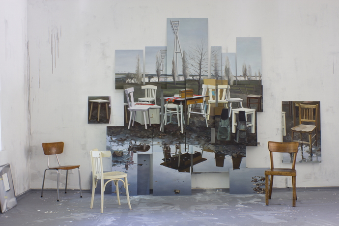 Die Klammer der zusammengeführten Arbeiten benennt der Titel der Ausstellung AUFBRECHEN, der sowohl inhaltlich als auch formal bei allen Arbeiten sichtbar ist und die Jury-Auswahl der Arbeiten bestimmt hat – darunter Malerei von Daniel Richter, Christian Hahn, Eduard Bargheer oder Carolin Leyck, Rauminstallationen von Sylvia Henze, Maria und Natalia Petschatnikov und Daniela Wesenberg, Skulpturen von Jan Köchermann, Tilman Knop und Rayyane Tabet. AUFBRECHEN formuliert aber auch die von den Veranstaltern erhoffte Dynamik und Präsenz, die entsteht, wenn Kollegen sich zusammen tun und gemeinsam auftreten „Wer mit dem Claim AUFBRECHEN an die Öffentlichkeit tritt“, schreibt Kultursenator Dr. Carsten Brosda im Vorwort des zur Ausstellung erscheinenden Katalogs, „der hat was vor: der will sehen, was sich hinter der Schale verbirgt, der will Alles hinterfragen, der ist neugierig auf die Zukunft, der will sich vorwärts bewegen. Das ist Kunst: Kunst ist Aufbruch.“