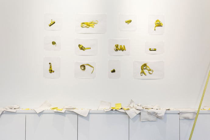 In den konzeptionellen Werkserien der Maßbänder, Umschläge und Kassenbons offenbart sich der Blick des Städters. Maria und Natalia Petschatnikov sind Großstadtmenschen, die als Flaneure ihre Stadt auf der Jagd nach Motiven durchstreifen. Was ihnen dabei ins Auge fällt, wirkt auf den ersten Blick unwillkürlich ausgewählt. Tauben und Hunde etwa, die von MNP in Plastiform lebensgroß nachgebildet werden. Die Farbigkeit der Tiere erinnert zwar an Beton, in dem Festhalten ihrer typischen Bewegung erscheinen sie aber nur allzu lebendig. Die Hunde sind – auch in den Hundezeichnungen – ausgeschnitten, sie haben Leinen, aber keine Besitzer. Aus dem Kontext gerissen sind auch Umschläge von Behördenbriefen. Zeichnungen von Maßbändern und Kassenbons. Die Verbindung der unterschiedlichen, wie Artfakte herausgegriffen Objekte liegt im Inhalt. Ihr Thema ist Kontrolle. Die Hundeleinen sind ein Symbol der Kontrolle des Halters über seinen Hund, auch für Abhängigkeit und Zugehörigkeit. Das Maßband drückt den Wunsch aus, die Welt zu vermessen, zu erfassen, den Überblick über sie zu erhalten. Dass wir selbst unter Kontrolle stehen, macht uns die Ankunft eines Behörden-Schreibens bewusst. Auch die Kassenbons sind ein Ausdruck der Kontrolle über Vorgänge.