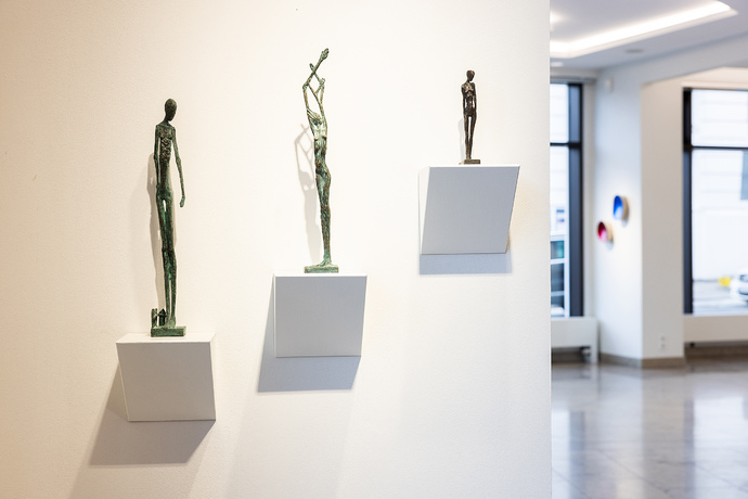 Sibylle Waldhausens Interesse gilt der menschlichen Figur. In genauester Beobachtung filtert sie die wesentlichen Bestandteile unserer Körpersprache heraus und übersetzt sie in Archetypen der menschlichen Natur. Ihre Formen sind fein gezeichnet und schematisiert, ihre Figuren individuell und überpersönlich zugleich. Die Figuren zeichnen universelle Bilder des Humanen – dass es oft Frauen sind, liegt im bildhauerischen Potential der weiblichen Form ebenso wie in einer selbstverständlichen, gelebten Emanzipation begründet. Der medialen Welt begegnet sie dabei mit einem uralten Material – Bronze – und traditioneller plastischer Handarbeit.