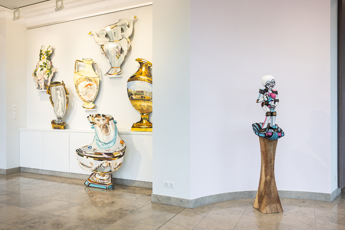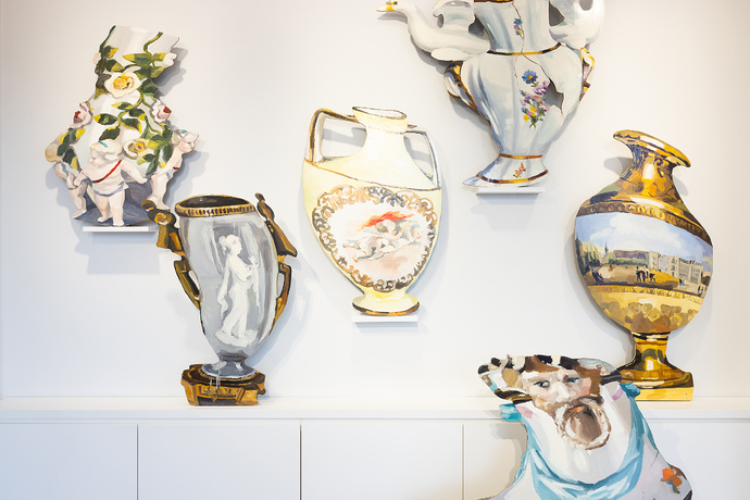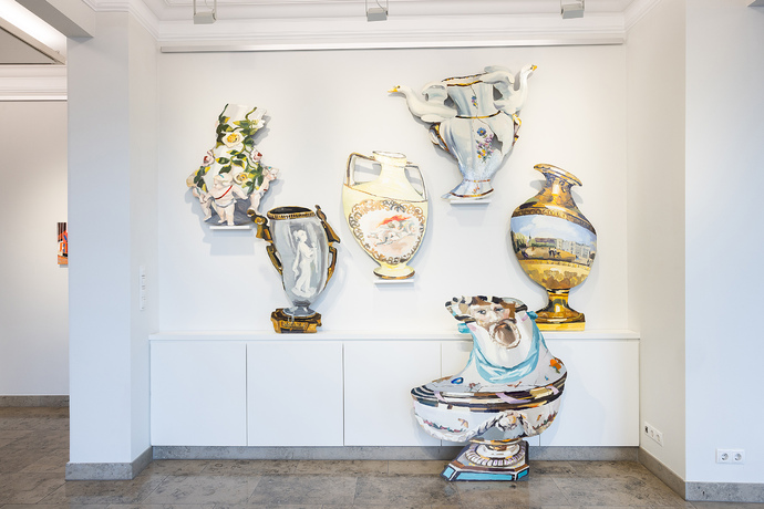 Die barocken Garten-Vasen der konzeptionellen Künstlerinnen scheinen sich zu bewegen, belebt zu sein. Als ob sie miteinander kommunizieren. Ihr trompe l’œil Material Porzellan steht einerseits für etwas sehr Kostbares, aber auch etwas sehr Zerbrechliches, Fragiles. Wie die Liebe selbst. Die Liebhaberei zu Dingen und damit die nostalgische Liebe wird ebenso thematisiert.