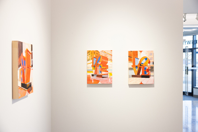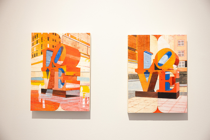 Für die Ausstellung hat Detlef Waschkau eigens eine Reliefserie von drei Ansichten der berühmten New Yorker Skulptur LOVE von Robert Indiana gefertigt. Das Triptychon ist ein Blick auf die Liebe, wie sie in der Kunst thematisiert wird und verweist so auf das selbstreferenzielle Moment der Liebe.