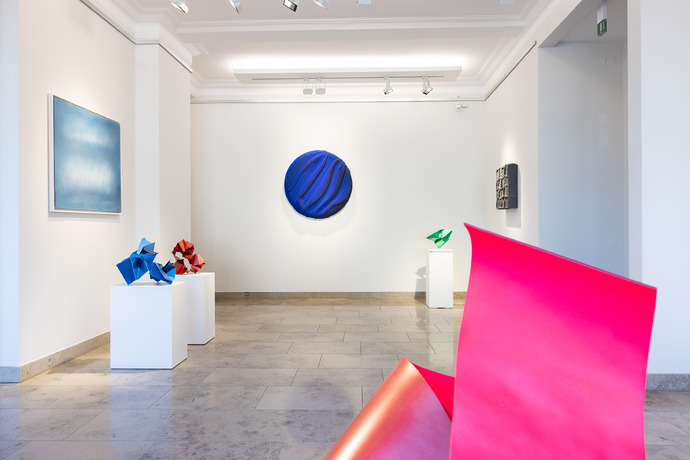 In der Ausstellung FARB RAUM stellt die Stern-Wywiol-Galerie vier abstrakte Positionen vor. Poetisch atmosphärische Farbnebel treffen auf expressiv bunte Farbfelder, plastisch geformte Strukturen auf geschmiedete Skulpturen. Historische Stilrichtungen wie Geometrische Abstraktion und Abstrakter Expressionismus werden neu verhandelt und bereichert.