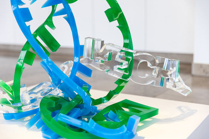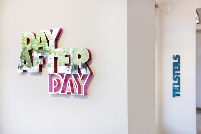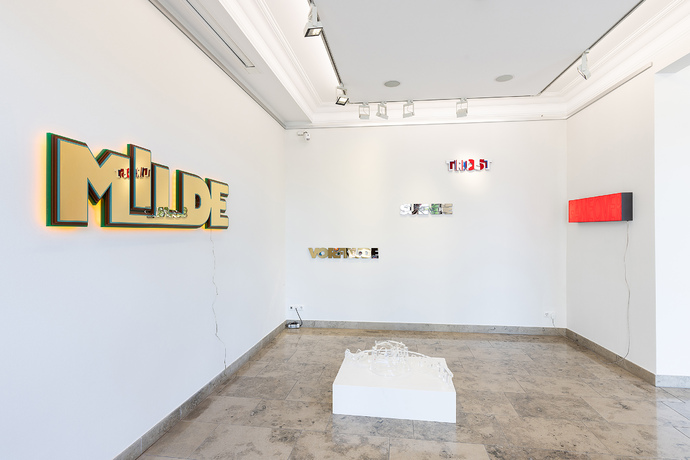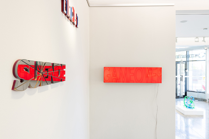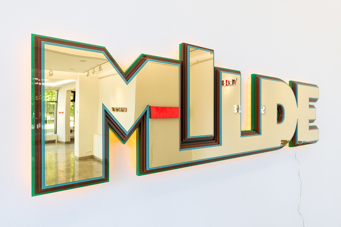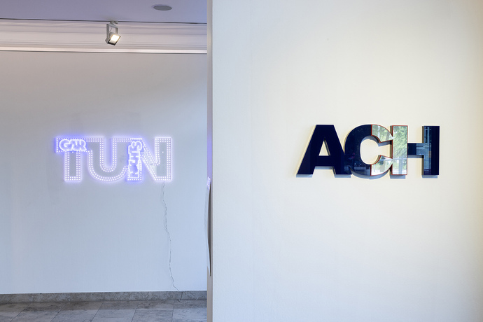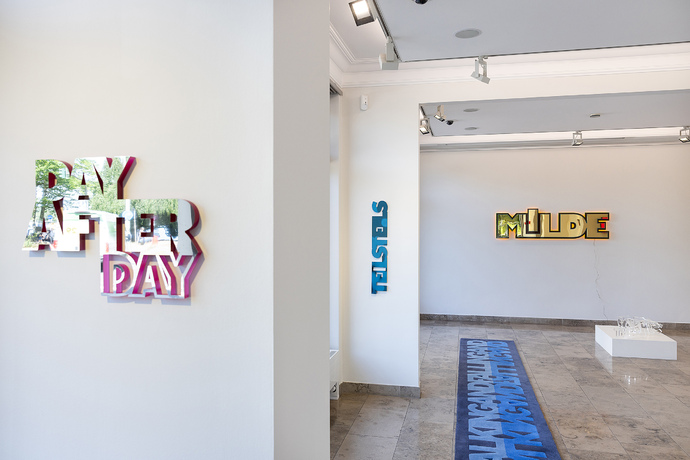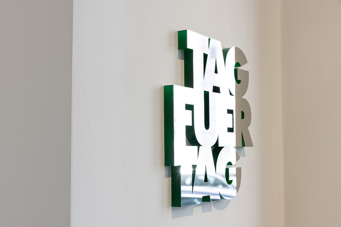 Zurück zur ÜbersichtDU bist es! Wer möchte nicht gern diesen Satz hören. Babak Saeds Thema als Künstler ist Kommunikation. Er beschäftigt sich mit dem geschriebenen Wort, verfremdet es durch Groß- und Zusammenschreibung und macht uns dadurch den Vorgang des Lesens bewusst. Er verwendet Sprache als „Bild“ und knüpft damit an die westliche Konzeptkunst an und an die durch die Tradition der Schriftwerbung geschulten visuellen Gewohnheiten des Betrachters. Sicher spielt auch seine Herkunft aus dem Iran eine Rolle – die traditionelle islamische Kunst lebt von der Kunstfertigkeit und Ornamentalisierung der Schrift. Saeds Werke leben von einem feinen Gespür für Sprache und ihre Zwischentöne, für Doppeldeutigkeiten, Alliterationen und Wortspiele. Lebensphilosophische und gesellschaftliche Fragen werden von ihm in äußerster sprachlicher Reduktion und in mehrdeutigen Formulierungen intelligent und spielerisch visualisiert.