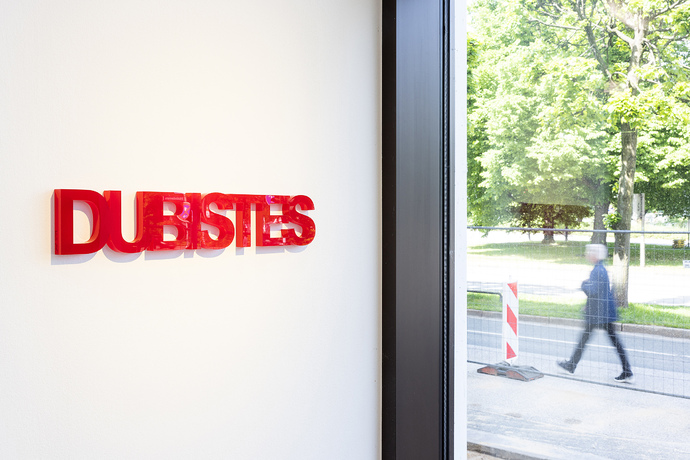 DU bist es! Wer möchte nicht gern diesen Satz hören. Babak Saeds Thema als Künstler ist Kommunikation. Er beschäftigt sich mit dem geschriebenen Wort, verfremdet es durch Groß- und Zusammenschreibung und macht uns dadurch den Vorgang des Lesens bewusst. Er verwendet Sprache als „Bild“ und knüpft damit an die westliche Konzeptkunst an und an die durch die Tradition der Schriftwerbung geschulten visuellen Gewohnheiten des Betrachters. Sicher spielt auch seine Herkunft aus dem Iran eine Rolle – die traditionelle islamische Kunst lebt von der Kunstfertigkeit und Ornamentalisierung der Schrift. Saeds Werke leben von einem feinen Gespür für Sprache und ihre Zwischentöne, für Doppeldeutigkeiten, Alliterationen und Wortspiele. Lebensphilosophische und gesellschaftliche Fragen werden von ihm in äußerster sprachlicher Reduktion und in mehrdeutigen Formulierungen intelligent und spielerisch visualisiert.