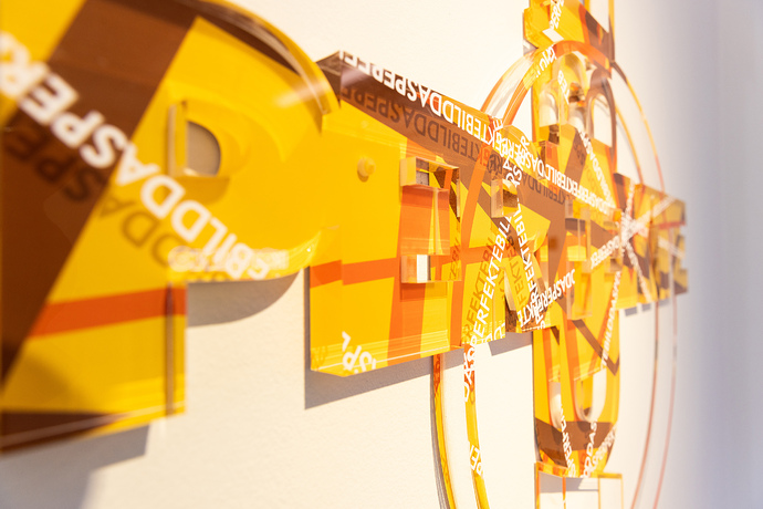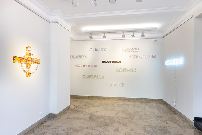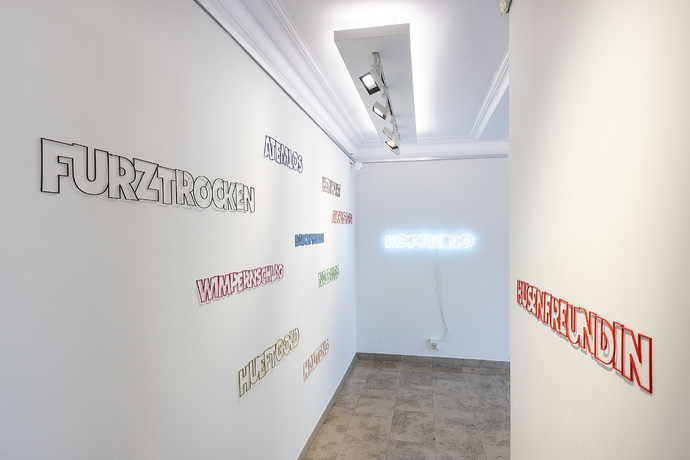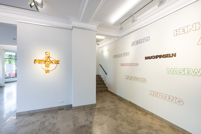 In der Ausstellung stellt er seine neue Werkserie zum Thema Sprache und Körper vor. Nicht nur im Deutschen gibt es viele Redewendungen, die sich auf Körperteile beziehen. An jemandes Lippen hängen oder auf die Nase fallen. Auch wenn man sie nicht kennt, ist die Bedeutung leicht nachvollziehbar. Eben weil uns die Körperteile nah sind, körpernah eben. Babak Saed eröffnet uns mit Werken wie KOPFKINO, WIMPERNSCHLAG, BAUCHPINSELN oder OHRWURM einen neuen Blick auf das vermeintlich Nahe, dass wir dann in neuen Bedeutungsebenen erfassen können.