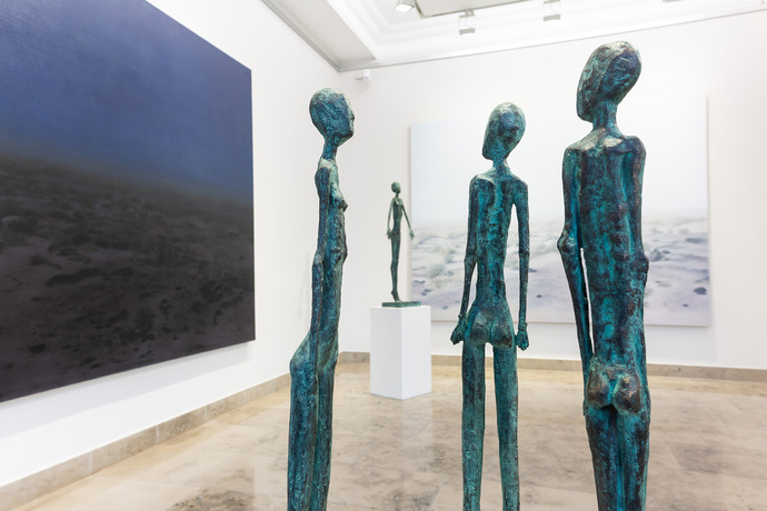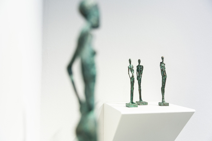 Sibylle Waldhausens Interesse gilt der menschlichen Figur. In genauester Beobachtung filtert sie die wesentlichen Bestandteile unserer Körpersprache heraus und übersetzt sie in Archetypen der menschlichen Natur. Ihre Formen sind fein gezeichnet und schematisiert, ihre Figuren individuell und überpersönlich zugleich. Die Figuren zeichnen universelle Bilder des Humanen – dass es oft Frauen sind, liegt im bildhauerischen Potential der weiblichen Form ebenso wie in einer selbstverständlichen, gelebten Emanzipation begründet.