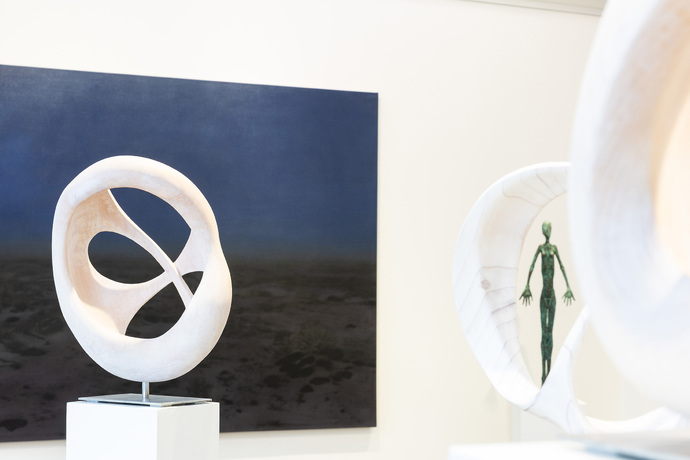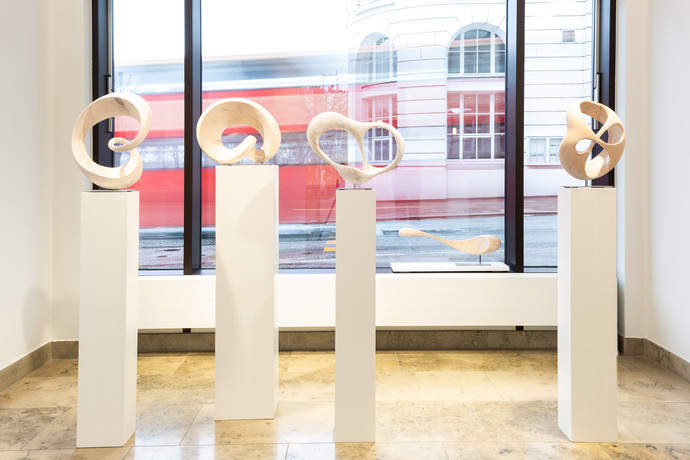 Yves Rasch stellt neue Holzskulpturen aus seinen Zyklen UNENDLICHKEIT und ATMUNG vor. Sein Interesse gilt der Korrespondenz zwischen den gewachsenen Strukturen des Materials Holz, die er mit organischen, der Natur entlehnten Formen und gewachsten Oberflächen in Beziehung setzt. Mit der durchscheinenden weißen Farbgebung werden die Skulpturen ihrem Material gleichsam entrückt und in einen Schwebezustand versetzt und zwischen Natur und Künstlichkeit, zwischen Oberfläche und reiner Form gehalten.