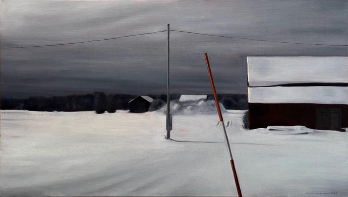 Three Barns, 2020, Oil on canvas, 57 × 100 cm