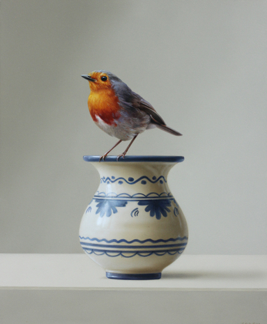 Rotkehlchen, 2020, Oil on panel, framed (wood), 30 × 25 cm